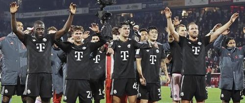 „Wir sind eine Einheit, das ist das wichtigste – und dann macht es Spaß“: Kapitän Neuer schwärmt von den Bayern, die hier über das 3:1 in Köln jubeln. Schon am Samstag in Leipzig soll es so weitergehen. © Vogel/EPA