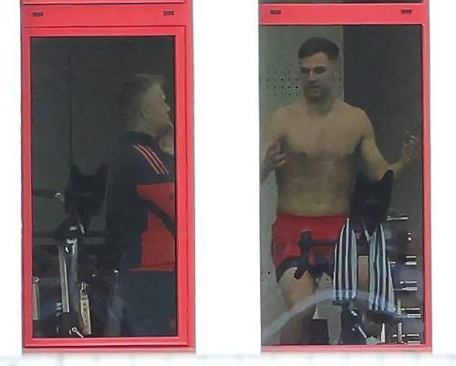 Durchs Fenster geschaut: Auf dem Fahrrad-Ergometer bereitet sich Joshua Kimmich auf sein Comeback vor. © IMAGO/Ruiz