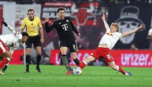 Ganz rund lief Leon Goretzka nicht durch die Katakomben des Leipziger Stadions. Der rechte Knöchel tat weh. Und auch wenn der 30-Jährige wohl „nur“ eine Prellung erlitten hat, war die Szene aus der 29. Minute noch lange nicht vergessen. „Das ist schon heftig gewesen“, sagte Max Eberl zum Einsteigen