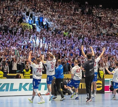 Ein Zwölftel der Fähringer Bevölkerung feiert derzeit eine Handball-Party in Oslo – am Sonntag schlug ihr Team Montenegro mit 37:24. © Poppe/Imago
