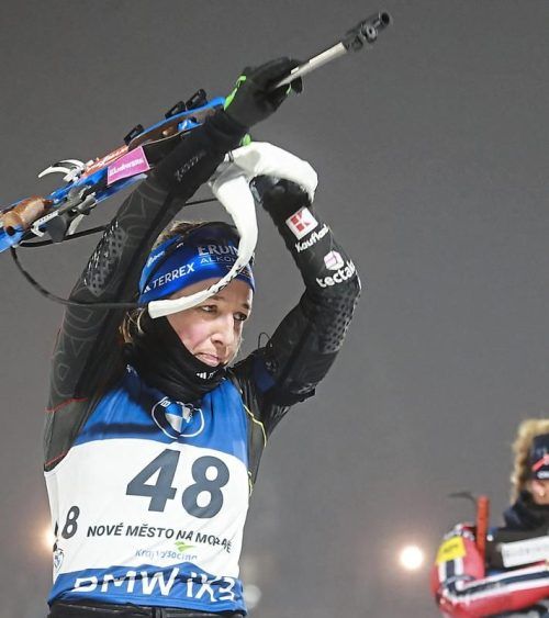Nove Mesto – Gesamtweltcupsiegerin Franziska Preuß hat beim Biathlon-Weltcup in Nove Mesto zum ersten Mal in dieser Saison das Podest erreicht. Im verkürzten Einzel über 12,5 Kilometer belegte Deutschlands Sportlerin des Jahres nach zwei Schießfehlern Platz drei. Zur Siegerin Justine Braisaz-Bouchet