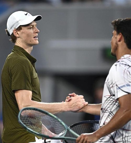 Jannik Sinner und Luciano Darderi. © Carrett/EPA