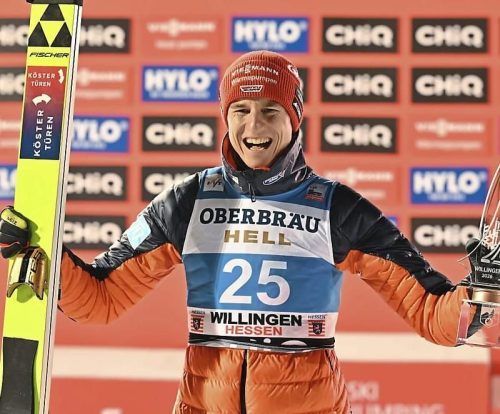 Willingen – Mit einem lange vermissten Gefühl schieren Skispringer-Glückes schwebte Karl Geiger in Richtung Siegerpodest, die Teamkollegen und 22.000 Fans an der Mühlenkopfschanze klatschten begeistert Beifall: Kurz vor Olympia ist das große DSV-Sorgenkind mit einem grandio
