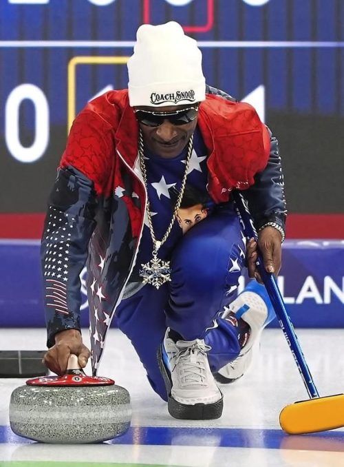 Da curlt der Rapper: Snoop Dog versuchte sich auf dem Eis. © Milligan/dpa
