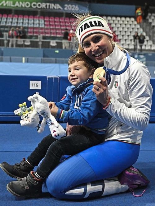 Mailand – Eisschnellläuferin Francesca Lollobrigida rannte nach ihrem sensationellen Gold-Triumph mit der italienischen Flagge in die Katakomben zu ihrem Sohn Tommaso, nahm ihn ganz stolz auf den Arm und widmete ihm anschließend den Olympiasieg. „Ich habe es auch für ihn getan, damit er eines Tages