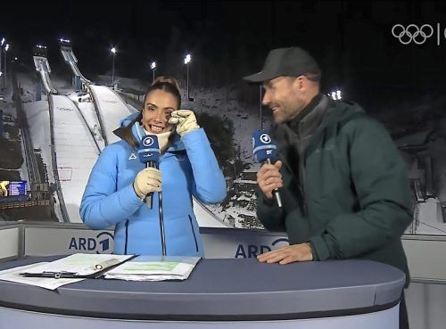 Philipp Raimunds Olympiasieg war auch für Moderatorin Lea Wagner und Sven Hannawald ein emotionaler Moment. © IOC