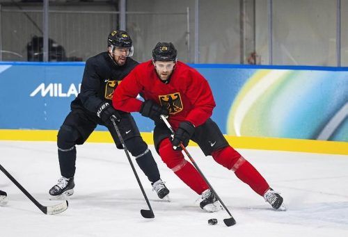 Trainingsduell unter alten Bekannten: Draisaitl (r.) und der Müchner Fabio Wagner kennen sich aus der U16. © DEB/City-Press