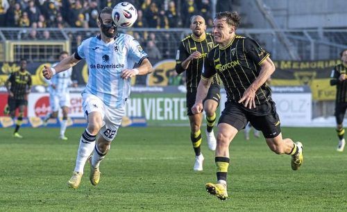 Geht dahin, wo es wehtut: Löwen-Stürmer Sigurd Haugen (li.) zeigte mit Maske beim Comeback gegen Aachen keine Scheu. Sein erster Ballkontakt? Mit dem Kopf. © Gamel/Imago; Imago
