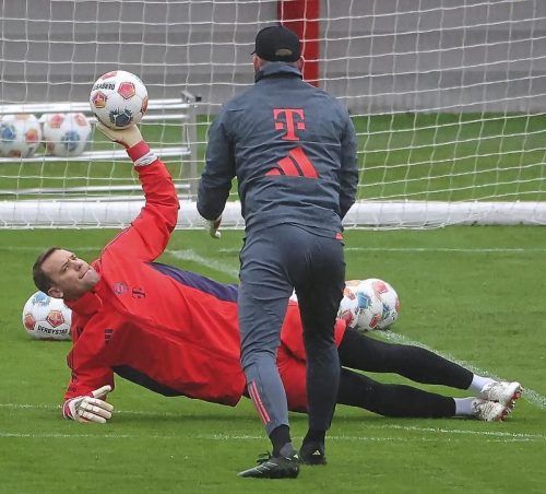 Wieder am Ball: Neuer ist seit Montag im Training, fliegt aber noch nicht durch die Luft. © Philippe Ruiz (3)