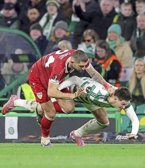 Celtic niederringen: VfB-Abwehrchef Jeff Chabot fehlt allerdings bei der Rückspiel-Aufgabe, © dPa/Steve Welsh
