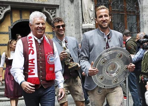 Bayernfan und Bürgermeister Dieter Reiter, hier mit Harry Kane, gerät in Erklärungsnot. © Löb/dpa