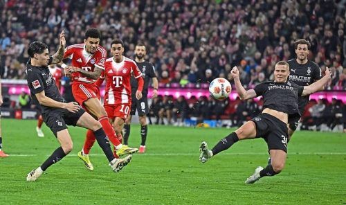 Machte den Anfang: Luis Diaz wirbelte vorne nach Belieben. Ein Treffer und ein Assist – Harry Kane wurde gegen Gladbach nicht vermisst. © IMAGO/Bernd Feil/M.i.S.