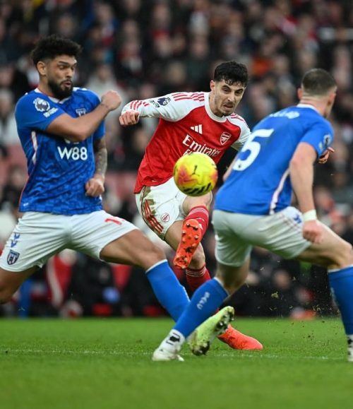 Ab durch die Mitte: Havertz im Arsenal-Trikot. © IMAGO