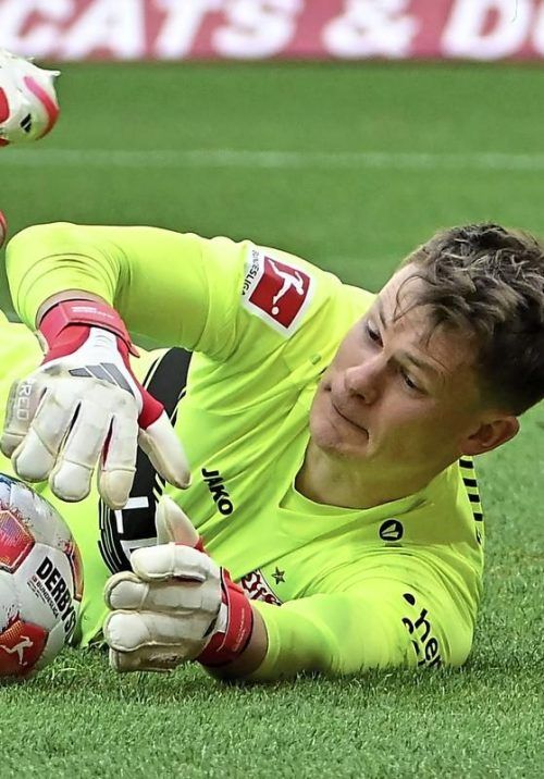 VfB-Schlussmann Nübel in Aktion. © Silz/dpa
