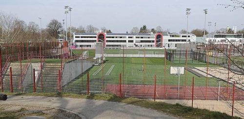 Der neue Bau entsteht am Ende der auf dem Übersichtsbild helleren Trainingsplätze, nahe zu den Bäumen.
