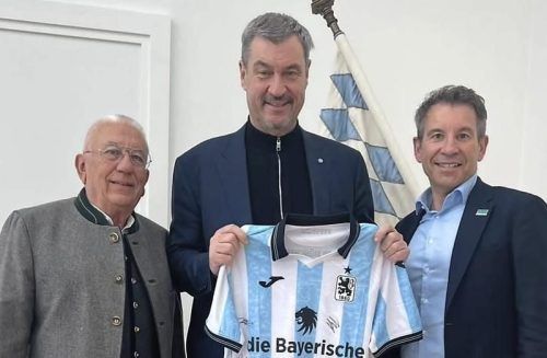 Hat er ein Löwen-Herz? Ministerpräsident Markus Söder mit Gernot Mang (r.) und Walter Lechner, dem Leiter der Stadionkommission. © 1860