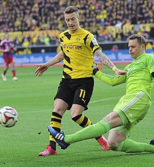 Marco Reus im Duell mit Manuel Neuer. © imago