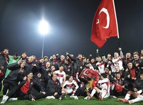 Die Fans strömten mit Autokorsos die Straßen der Türkei und verwandelten auch den Berliner Kurfürstendamm in eine nächtliche Partymeile, die Spieler um Ex-Bayern-Spieler Kenan Yildiz (r.) lagen sich in den Armen und schwenkten ihre Fahne, Präsident Recep Tayyip Erdogan sprach sogleich vom Endspiel.