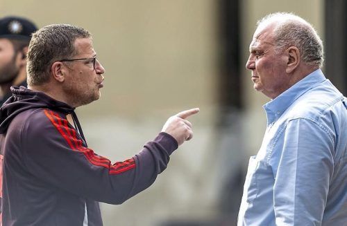 Spezielle Beziehung: Bayerns Sportvorstand Max Eberl und Münchens Ehrenpräsident Uli Hoeneß, hier bei einem Gespräch im Trainingslager. © Inderlied/d