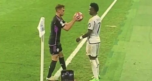 Die Szene ist fast zwei Jahre her, trotzdem geistern die Videos immer noch durchs Internet: Joshua Kimmich will im Halbfinal-Rückspiel 2024 weiterspielen, der FC Bayern liegt kurz vor Schluss gegen Real Madrid zurück. Also drückt er Vinicius Jr. den Ball in die Hand, damit dieser den Einwurf ausführ