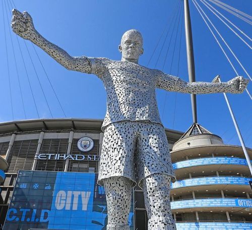 Vor dem Etihad Stadion steht eine Kompany-Statue. © Imago