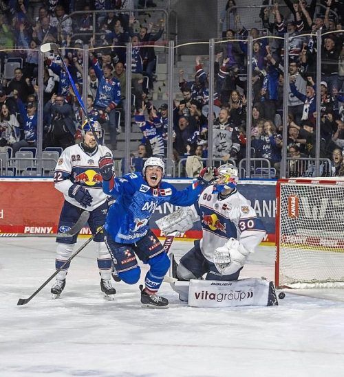 Explosiver Jubel: Justin Schütz schlug auch am Sonntag gegen den EHC München zu, sogar zweimal. © Udo Herrmann/Imago