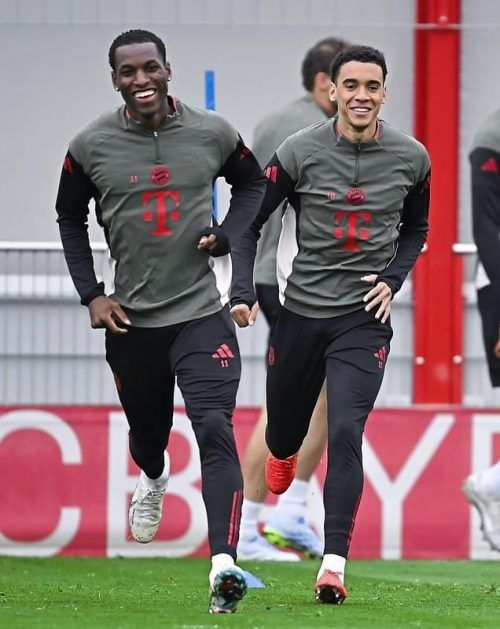 Mit Spaß bei der Sache: Musiala im Abschlusstraining vor Real. © Hoppe/dpa