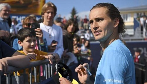 6:1, 6:2: Alexander Zverev schreibt nach seinem dominanten Sieg gegen Gabriel Diallo Autogramme am Aumeister. © Hoppe/dpa