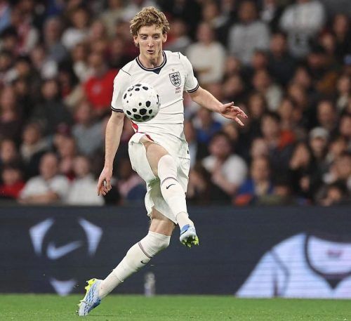 Umworben und interessiert: Anthony Gordon – hier im Nationaltrikot – soll sich Bayern vorstellen können. © Dennis/AFP