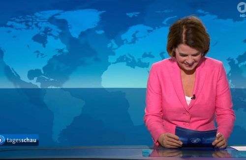 Sprecherin Susanne Daubner kriegt sich in der Nachrichtensendung nicht mehr ein