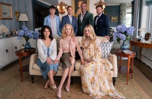 Mutti hat den Laden im Griff: Nicole Kidman (u. Mi.) spielt die unterkühlte Patriarchin. Deren Mann (Liev Schreiber, hi. 2. v. re.) hat eine Affäre mit der Freundin seiner Schwiegertochter Amelia (Eve Hewson, u. li.). © Netflix