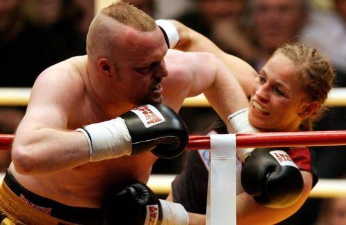 Stefan Raab und Regina Halmich bei ihrem Showkampf im Jahr 2007 – zwei, die sich nichts schenken. © dpa