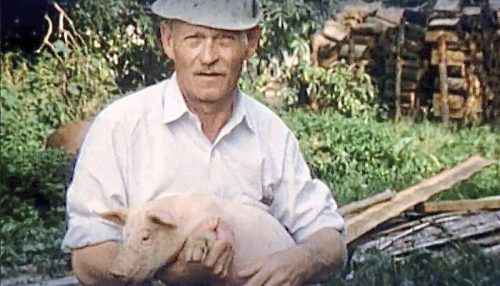 Günter Pletzer sitzt am Rand eines Schweinekobers irgendwo im ländlichen Idyll. Behaglich pelzt sich ein Ferkel auf seinem Schoß.