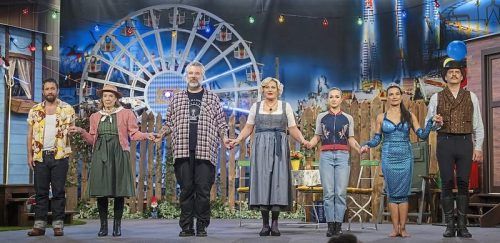 Das Team hält zusammen: Dieter Fischer (3. v. li.) und seine Kollegen wünschen sich, dass der „Komödienstadel“ doch noch weitergeht. „Es gibt eine Reihe vielversprechender Ideen“, sagen sie. © Astrid Schmidhuber, Krivograd/BR