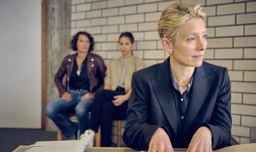 Ohne Anstand und Moral, aber auf der Seite des Rechts: Sandra Borgmann als Anwältin, im Hintergrund Lena Odenthal (Ulrike Folkerts, li.) und Johanna Stern (Lisa Bitter). © Linder/SWR