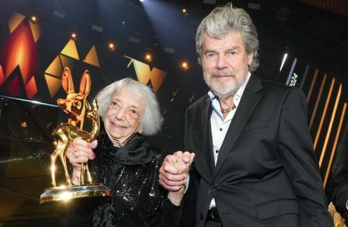 Hand in Hand bei der Bambi-Gala: die beiden Preisträger Margot Friedländer („Mut“) und Reinhold Messner („Unsere Erde“). „Seid Menschen“, rief die Holocaust-Überlebende den Zuschauerinnen und Zuschauern zu. © Harrel/BrauerPhotos