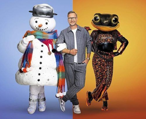 Moderator Matthias Opdenhövel mit Schneemann und Feuersalamander. © Nadine Rupp/ProSieben/Joyn