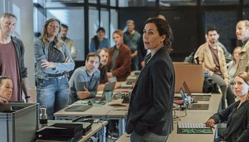 Kriminaloberrätin Barbara Kramer (Nina Kunzendorf, vorne) beschwört ihr Team, auf jedes Detail zu achten. © Luis Zeno Kuhn /SWR