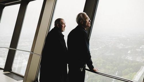 Die Kommissare Schenk (Dietmar Bär, li.) und Ballauf (Klaus J. Behrendt) auf dem Kölner Funkturm. © Sandra Stein/WDR