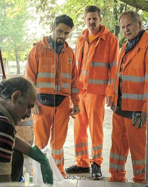 „Käpt’n“ Werner Träsch (Uwe Ochsenknecht), Matthias „Motte“ Krüger (Marc-Oliver Schulze) und Tarik Büyüktürk (Aram Arami, v. re.), die „Drei von der Müllabfuhr“, sorgen nun in Neukölln für Ordnung. In dem multikulturellen Kiez weht jedoch ein rauerer Wind als im eher vornehmen Charlottenburg. Schock