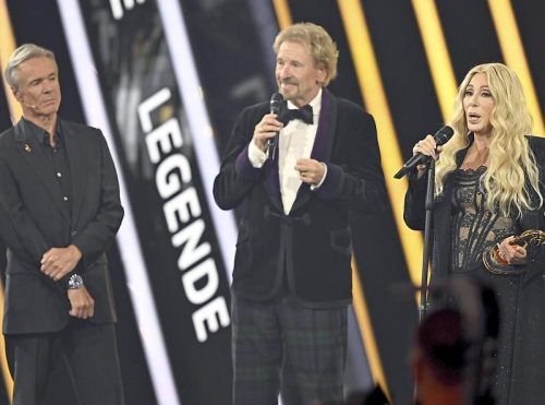 Unangenehmer Schlussmoment einer ansonsten gelungenen Bambi-Gala: Thomas Gottschalk hielt eine krude Rede für Cher, die als Legende ausgezeichnet wurde. © Michael Tinnefeld/api