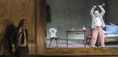 Mit allen Mitteln: Der Brandner Kaspar will den Boanlkramer nicht begleiten. Daran lässt Sigi Zimmerschied auf der Bühne des Residenztheaters keinen Zweifel. © SANDRA THEN