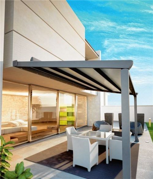 Mit einer Pergola wird die Terrasse zum Outdoor-Wohnzimmer. Neue Modelle sind nicht nur stark im Design, das Tuch dieser Pergola ist außerdem wasserdicht und kann bei Bedarf komplett eingefahren werden. Dabei benötigt es nur wenig Platz. Foto epr/HELLA Sonnenschutztechnik