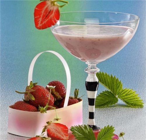 200 g vollreife Erdbeeren waschen, putzen und mit 250 Gramm Joghurt im Mixer gut verquirlen. Mit zwei Teelöffeln Vanillezucker und einem Esslöffel Zitronensaft abschmecken. Gut gekühlt in zwei Cocktail-Gläsern servieren. Foto Wirths PR