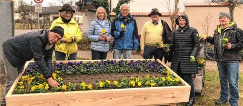 Aus Solidarität mit der Ukraine hat der Verschönerungsverein Amerang im März ein Blumenbeet in den Landesfarben Gelb und Blau gepflanzt.