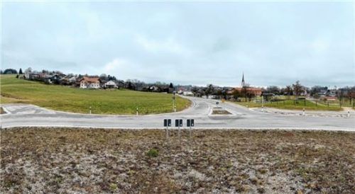 Ortsansicht vom Kreisel aus, der den Ortskern über die Ameranger Spange deutlich vom Schwerlastverkehr aus dem Gewerbegebiet entlastet.
