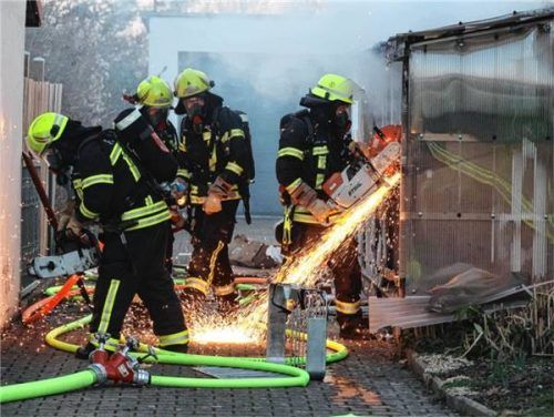 Einsatz bei einem Kellerbrand in Waldkraiburg Süd.