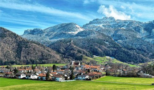Flächenmäßig ist Aschau mit seinen 44 Ortsteilen auf rund 80 km² die größte Gemeinde im Landkreis Rosenheim. Überragt wird der Fremdenverkehrsort von der 1.669 Meter hohen Kampenwand und dem mitten im Priental thronenden Schloss Hohenaschau.Foto Reiter