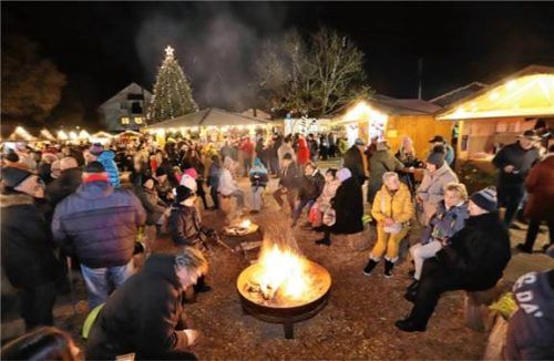 Der Christkindlmarkt ist ein Besuchermagnet. Immer beliebt sind auch die Feuerabende, die der Kinderförderverein am Rathausvorplatz veranstaltet. An wärmenden Feuerschalen trafen sich wieder viele Besucher, um die vorweihnachtliche Atmosphäre entspannt zu genießen. Foto pfinger