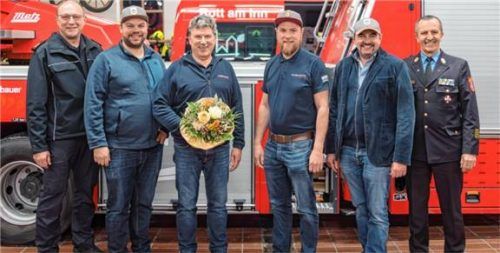 Nach 18 Jahren an der Spitze übergab Manfred Lunghammer das Kommando an Christian Schaber, der die FF ab März leiten wird. Von links: Kreisbrandinspektor Stephan Hangl, Maximilian Plenk, Manfred Lunghammer, Christian Schaber, Bürgermeister Daniel Wendrock, Kreisbrandrat Richard Schrank. Foto lemmer